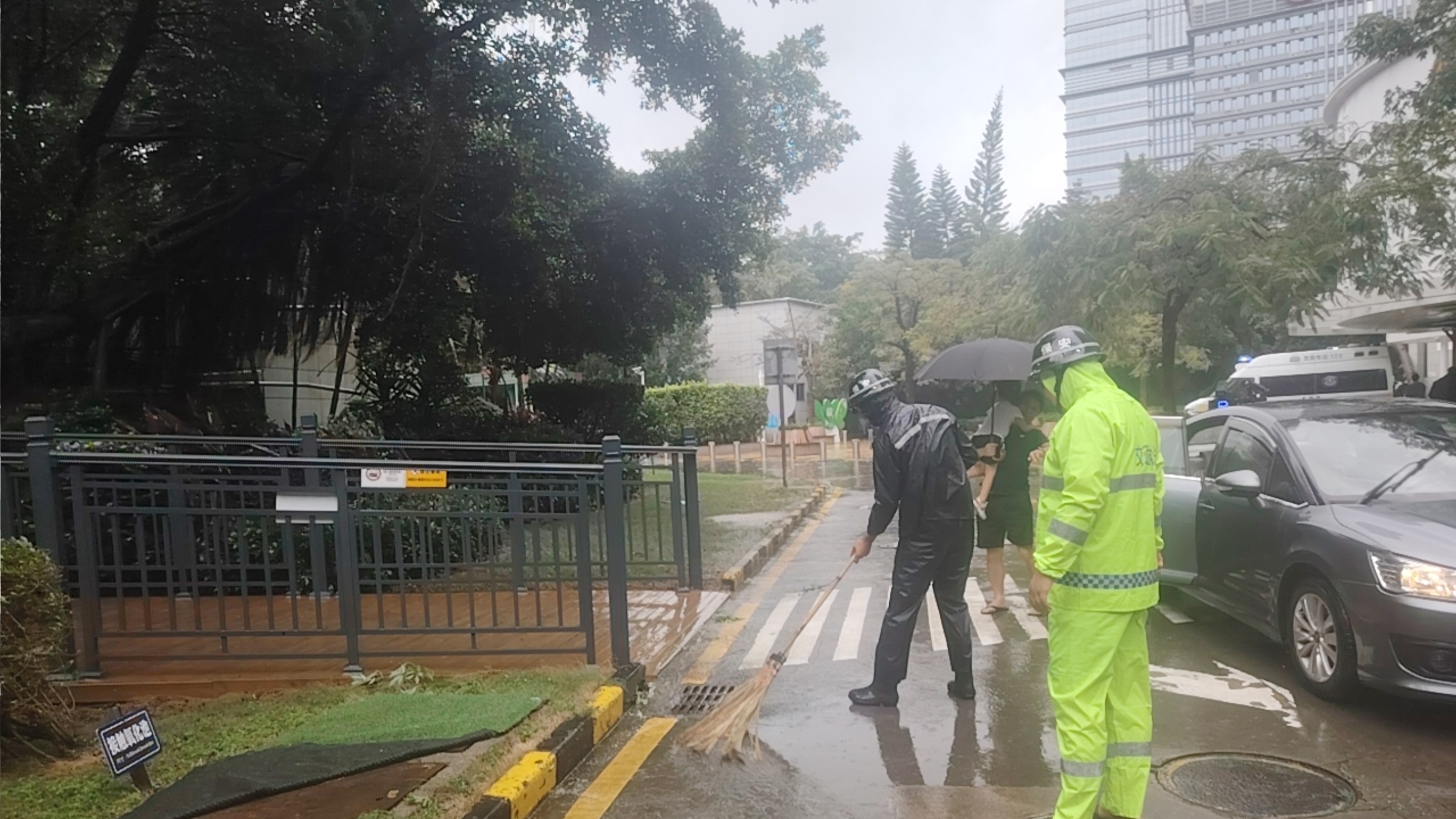 在深圳市兒童醫(yī)院,特發(fā)服務(wù)團(tuán)隊(duì)針對(duì)重點(diǎn)防汛部位提前布置防汛沙袋等物資,對(duì)主要出入口設(shè)施進(jìn)行加固,并對(duì)電力系統(tǒng)開(kāi)展全面隱患排查,最大限度降低臺(tái)風(fēng)可能帶來(lái)的影響。臺(tái)風(fēng)過(guò)后,工作人員立即投入清理工作,重點(diǎn)疏通下水口,防止落葉堵塞造成路面積水,確保醫(yī)療服務(wù)環(huán)境安全有序。