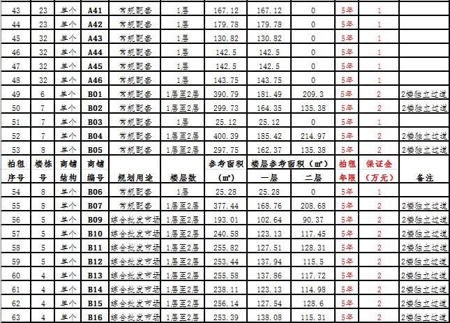 (二)拍租一層至二層合并為一個(gè)商鋪58 間,使用期5年,每間商鋪預(yù)交競(jìng)租保證金2萬元, 詳見商鋪簡介(欲競(jìng)租多間商鋪,保證金類推)。