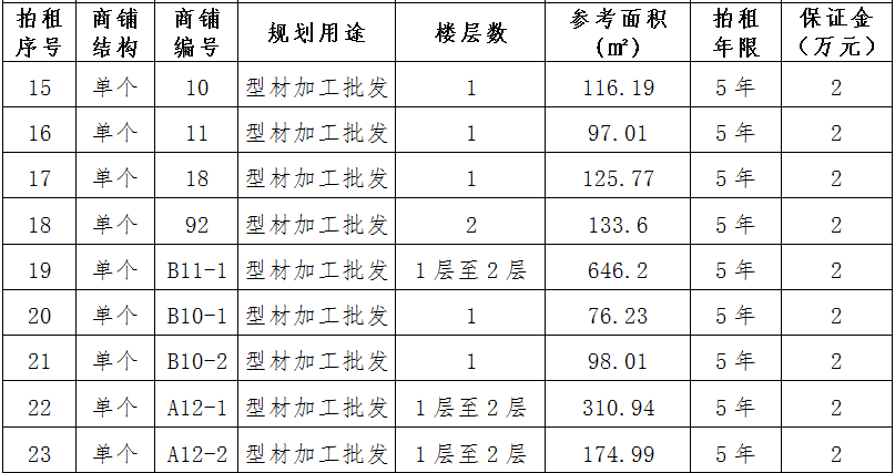 (二)拍租位于鎮(zhèn)雄縣舊府街道高山大地安置點(diǎn)23間(棟)商鋪使用權(quán)。以間(棟)為單位拍租。詳見下表: